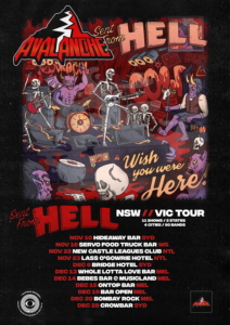 Avalanche, the mighty 4 piece hard rock machine from western Sydney, hit the road this November & December for they’re first ever interstate tour for the international re-release of their debut maxi-EP Sent From Hell due out via Sliptrick Records on November 26th. The ‘Sent From Hell Tour’ covers the east coast of Australia taking in Sydney, Wollongong, Newcastle and Melbourne. On the tour, Avalanche will be joined by over 50 of the country’s most kick-ass bands and musicians!