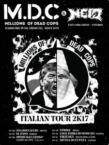 Italian grindcore band Neid, join forces with legendary US punk rock band Millions Of Dead Cops (MDC) for a 7 date tour across Italy. MDC were one of great pioneering hardcore punk bands in the 80’s and still possess a fantastic and powerful live show. Combined with the mighty stage shows of Neid, these will be great nights for fans.